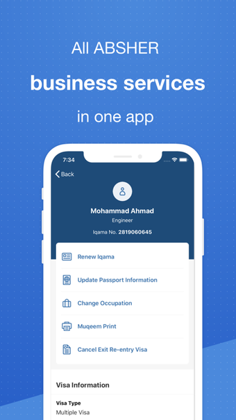يعمل تطبيق أبشر للأعمال على نظام التشغيل iOS 12.1.2 والإصدارات الأحدث. الإصدار الحالي للبرنامج هو 1.2 ، ويمكنك الحصول عليه باللغتين الإنجليزية والعربية.